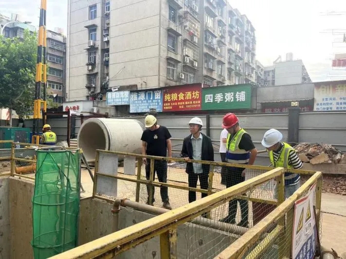 ? ? 紅巷(都府堤一解放路)、秦簡街(友誼大道一沙湖)排水工程值班負責人進行節(jié)日期間的安全巡查工作,要求施工現(xiàn)場頂管段工作前進行安全交底、氣體檢測,明挖段鋼板樁施工前做好地下管線調(diào)查工作。
