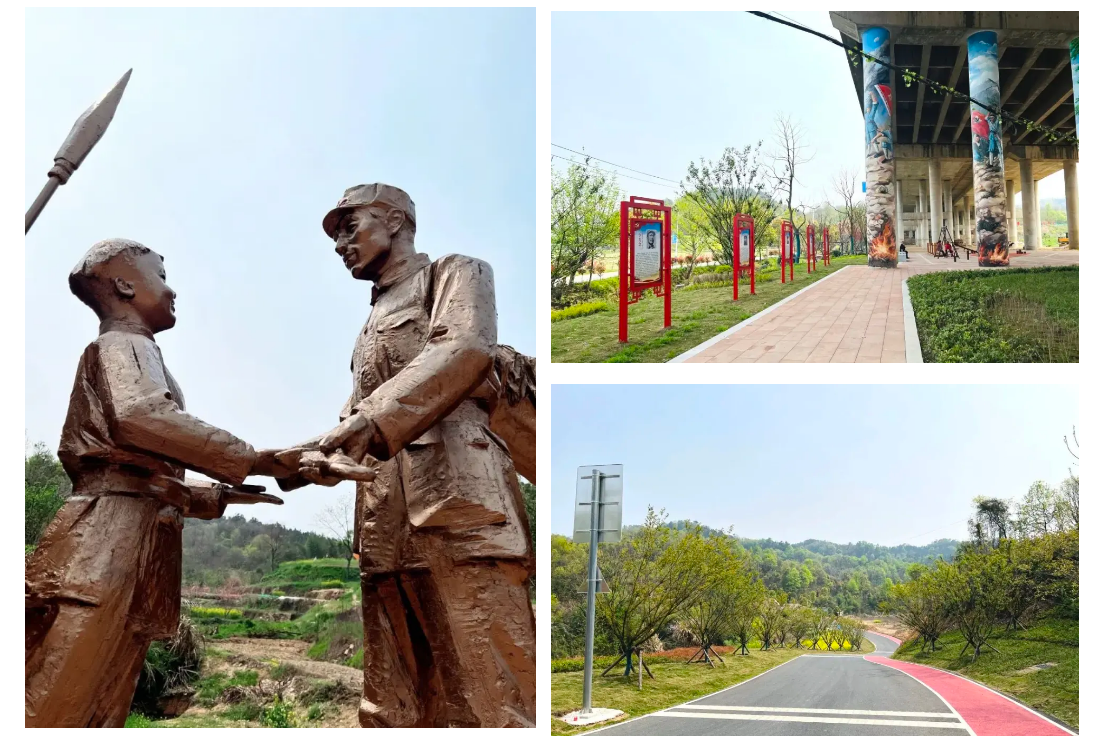 ? ? 武漢市政院設(shè)計團(tuán)隊以匠心鑄魂,運用耐候鋼板雕塑、橋墩彩繪、紅砂巖鋪裝等藝術(shù)手法,生動還原“張體學(xué)贈刀”“鄂南名將錄”等歷史場景,賦予鄉(xiāng)村道路厚重的文化內(nèi)涵。項目改造道路20公里,新建便民設(shè)施與景觀節(jié)點30余處,徹底打通鄉(xiāng)村交通瓶頸,惠及數(shù)萬村民。