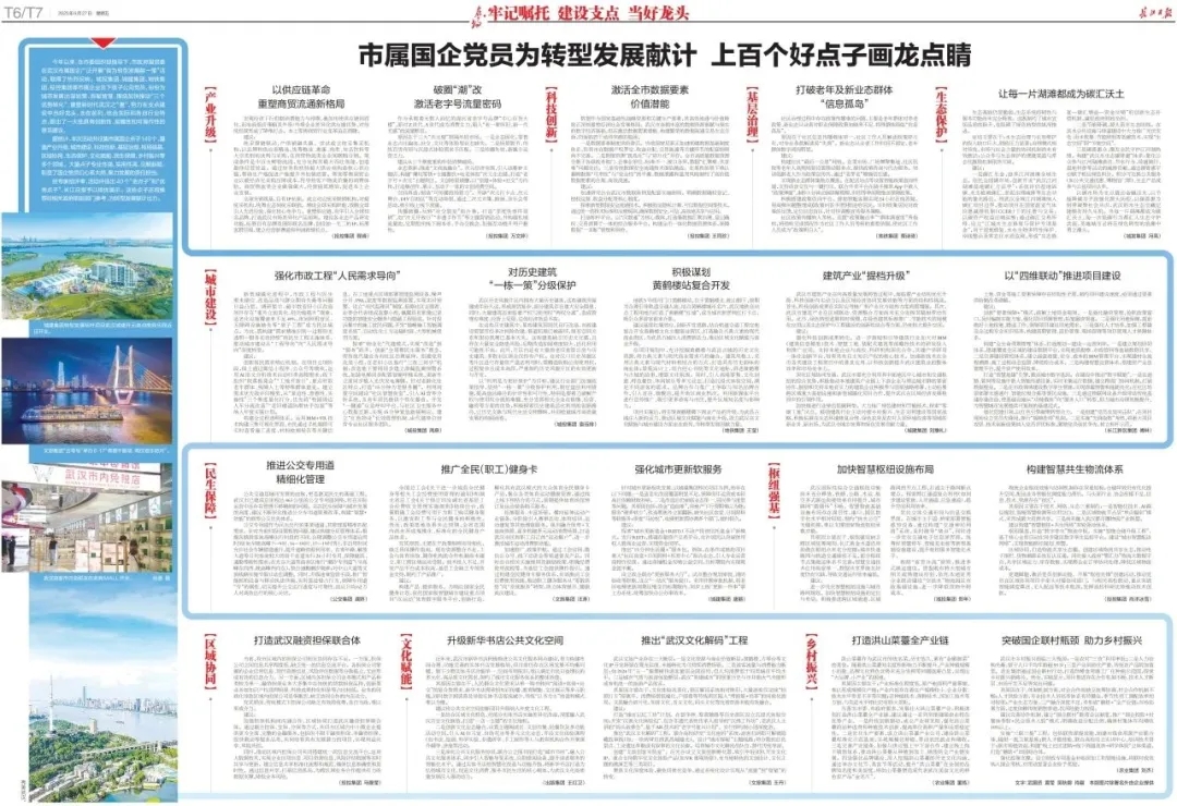 ? ? 今年以來,在市委組織部指導下,市政府國資委在武漢市屬國企廣泛開展“我為轉(zhuǎn)型發(fā)展獻一策”活動,取得熱烈反響。征集活動啟動后,武漢市政院積極響應城投集團的號召,圍繞加快推動“三個優(yōu)勢轉(zhuǎn)化”,重塑新時代武漢之“重”,努力在支點建設(shè)中當好龍頭、走在前列,公司本部及所屬各單位黨員紛紛為城市發(fā)展出謀劃策、貢獻智慧,提出了一些具有創(chuàng)新性、前瞻性和可操作性的意見建議。6月27日,市政府國資委通過《長江日報》公布了在市屬國企中征集到的20個“金點子”,其中武漢市政院有1個入選。