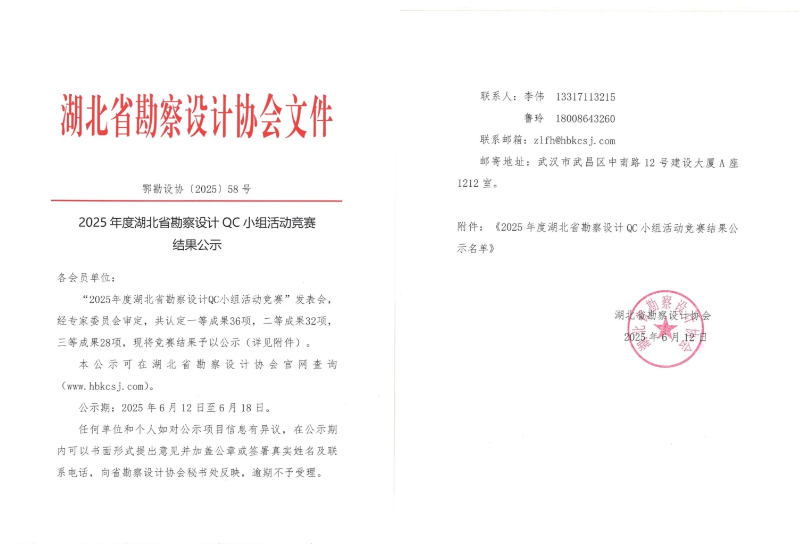 武漢市政院再傳捷報(bào)!近日,湖北省勘察設(shè)計(jì)協(xié)會(huì)組織召開(kāi)的“2025 年度湖北省勘察設(shè)計(jì)QC小組活動(dòng)競(jìng)賽”中,武漢市政院選送的兩個(gè)QC小組表現(xiàn)亮眼:地空事業(yè)部"拾光隧道QC小組"憑借創(chuàng)新成果斬獲競(jìng)賽二等獎(jiǎng),規(guī)劃研究事業(yè)部"智慧海綿領(lǐng)航QC小組"榮獲三等獎(jiǎng)佳績(jī)。