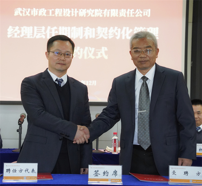 為貫徹落實(shí)黨中央、國(guó)務(wù)院關(guān)于實(shí)施國(guó)企改革三年行動(dòng)的重大決策部署,落實(shí)市城投集團(tuán)公司關(guān)于加快推進(jìn)所屬企業(yè)經(jīng)理層任期制和契約化管理的工作要求,12月20日下午,武漢市政設(shè)計(jì)院成功舉行公司及所屬企業(yè)經(jīng)理層任期制和契約化管理簽約儀式,標(biāo)志著武漢市政設(shè)計(jì)院在切實(shí)抓好國(guó)企改革三年行動(dòng)和三項(xiàng)制度改革工作中邁出關(guān)鍵一步。公司領(lǐng)導(dǎo)、總經(jīng)理助理、中層副職以上行政管理人員參加簽約儀式。