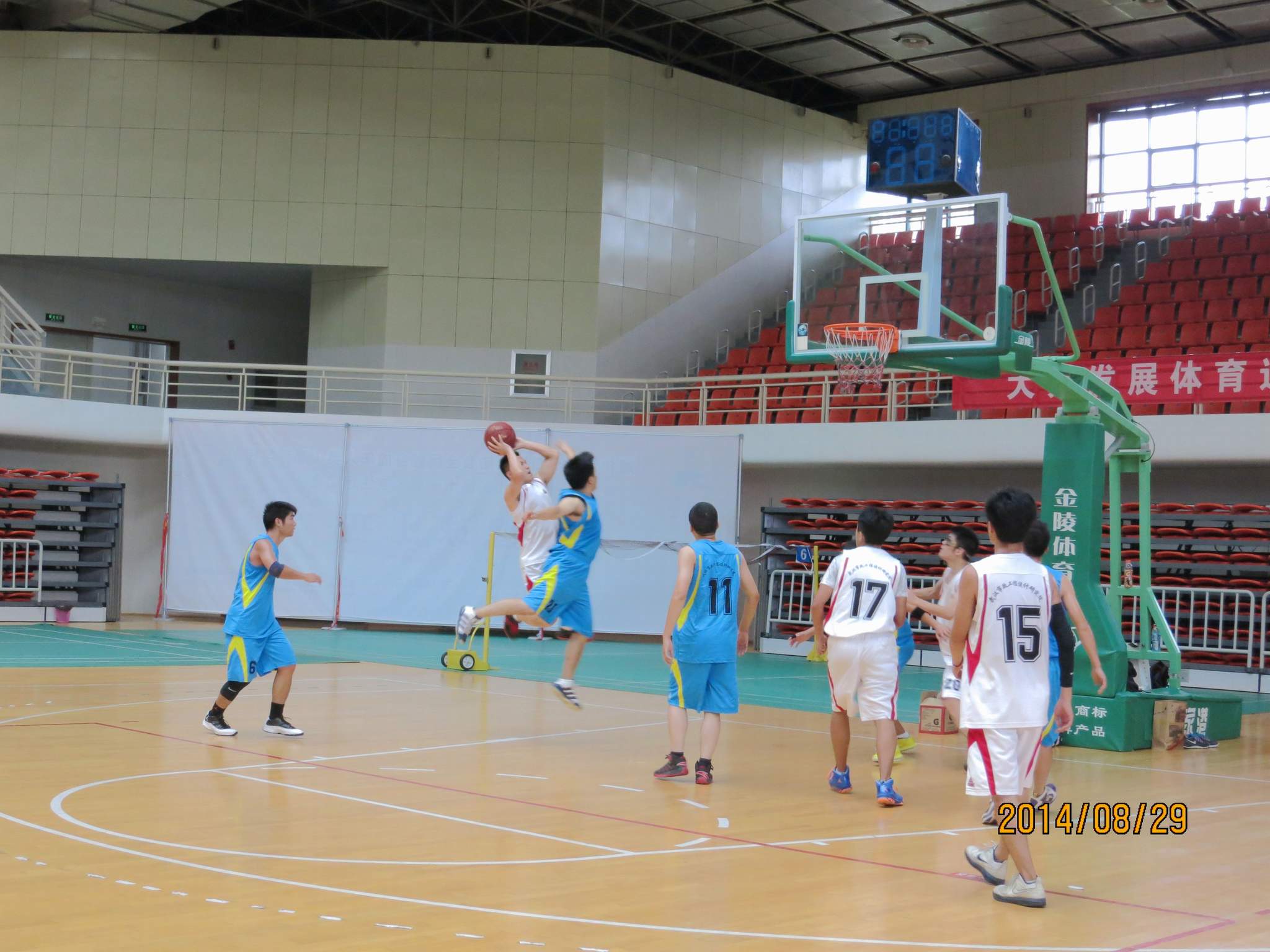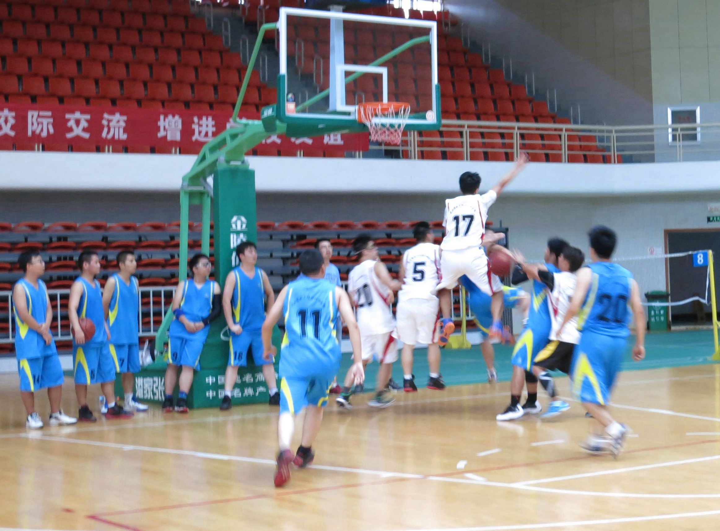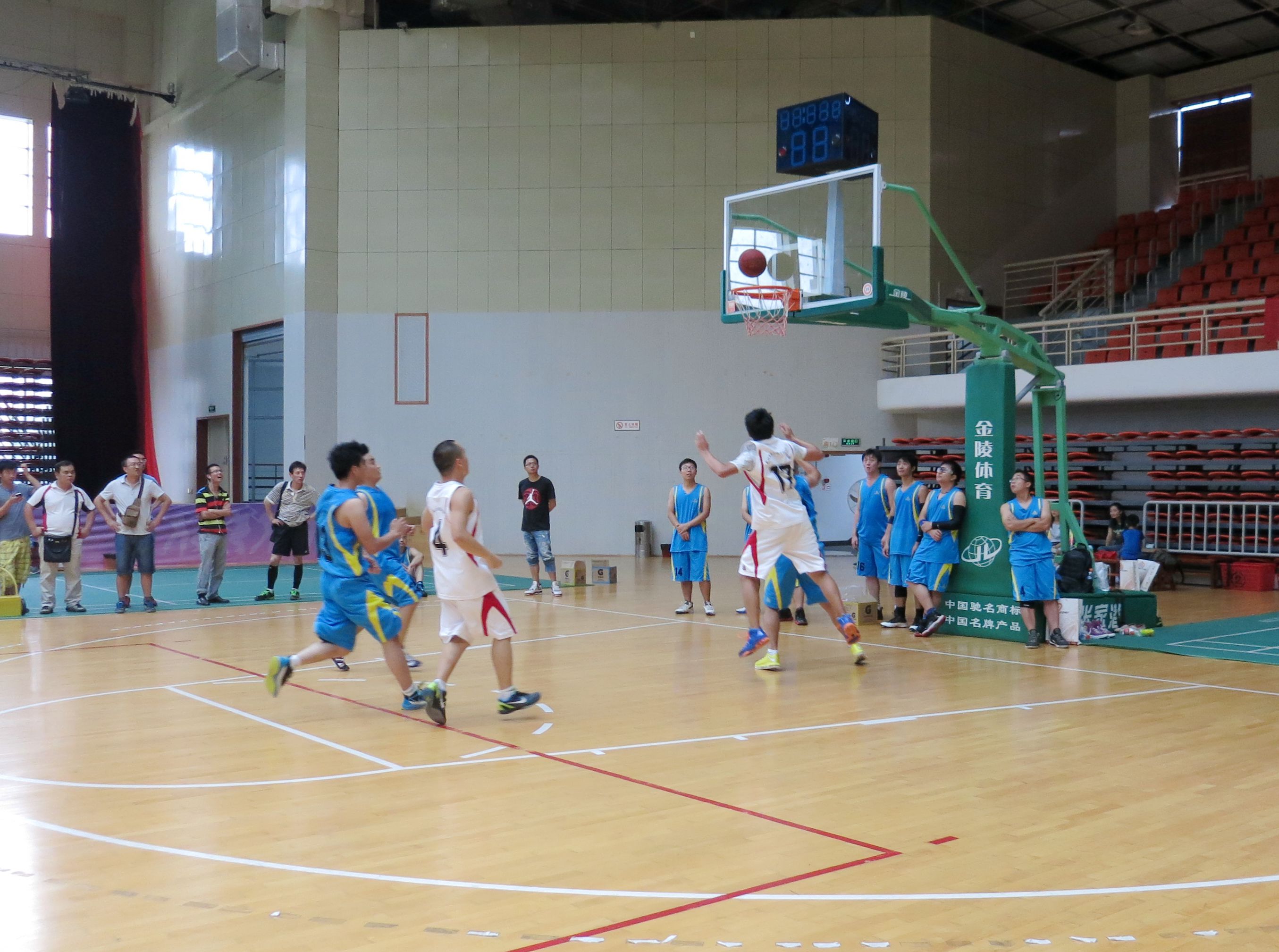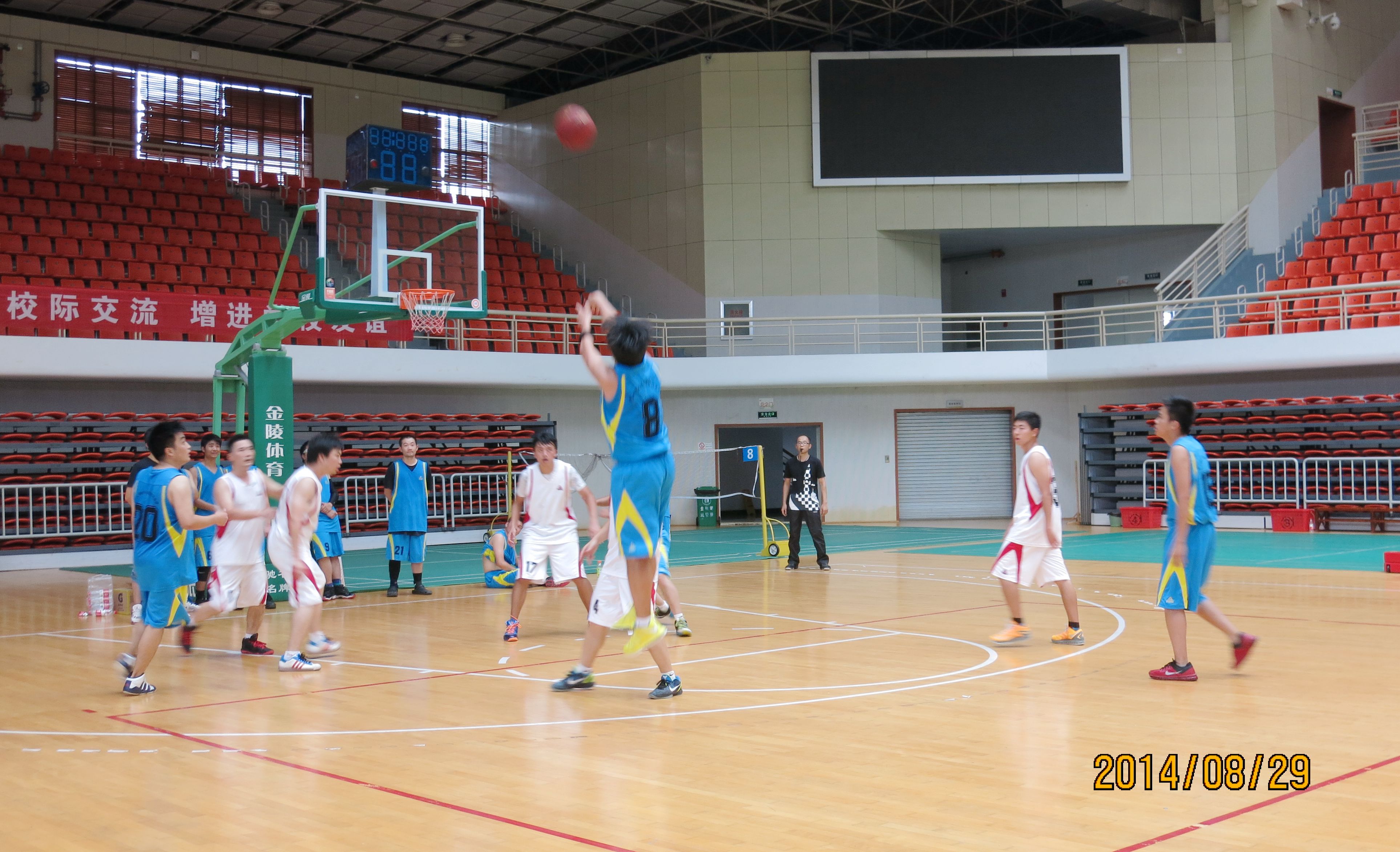 ??? 來自公司的八個分工會經(jīng)過抽簽,組成了兩支隊伍參加比賽,由于雙方實力相當(dāng),這場比賽在賽前就被認(rèn)為是一場勢均力敵的比賽。但是,比賽開始后,一個人的出現(xiàn)就迅速打破了場上的均衡,他就是來自藍(lán)隊的王龍。他的突破和快攻頻頻得手,很快便為藍(lán)隊確立了領(lǐng)先優(yōu)勢。相比于藍(lán)隊的個人表演,白隊依靠的則是團(tuán)隊配合,在克服了開賽之初球隊磨合不夠的困難后,白隊漸漸找到比賽的感覺,打出了多次漂亮的團(tuán)隊配合,緊緊咬住比分。然而,第三節(jié)將近五分鐘的時間未能得分,還是讓他們?nèi)鄙仝s超比分后勁。隨著裁判的一聲哨響,比賽宣告結(jié)束,最終的比分定格在69:55,藍(lán)隊以14分的優(yōu)勢獲得了勝利,王龍更是一人獨得35分,榮膺了本場比賽的得分王。