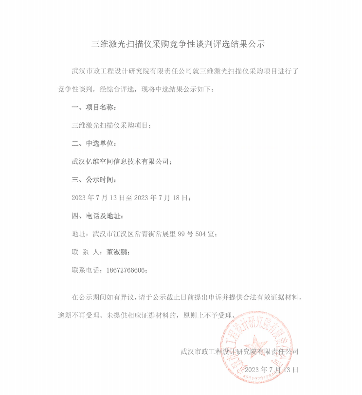 三維激光掃描儀采購競爭性談判評選結(jié)果公示